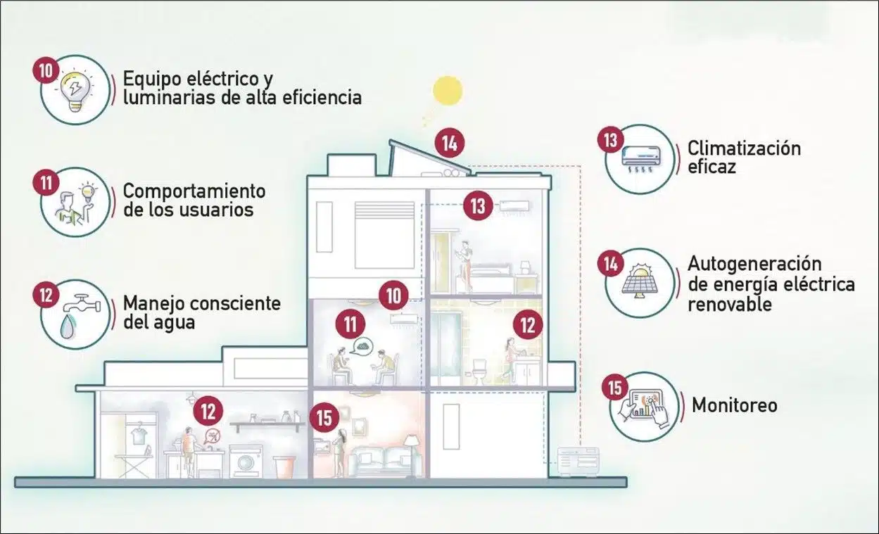 • Principios de carácter técnico. Estrategias con sistemas activos, ya sea como provisión de climatización o iluminación, o bien como auto generación de energía en el edificio.